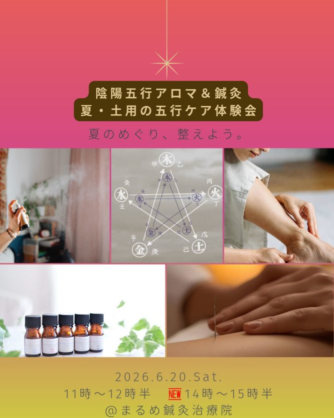 陰陽五行アロマ×鍼灸 第3弾開催します